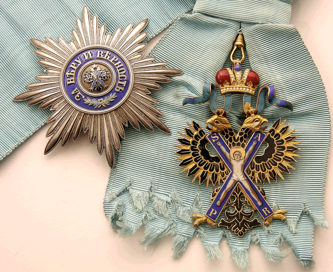 Alkuun, Pyhä Andreas, Pyhä Aleksanteri Nevski, Pyhä Vladimir, Valkoinen Kotka, Pyhä Anna, Pyhä Stanislaus, Pyhä Katariina, Pyhä Yrjö, Yrjön Sotaritarikunta