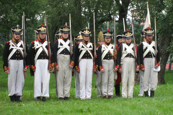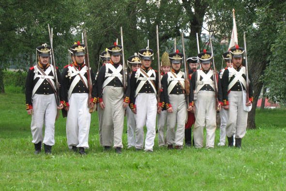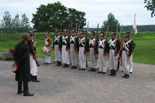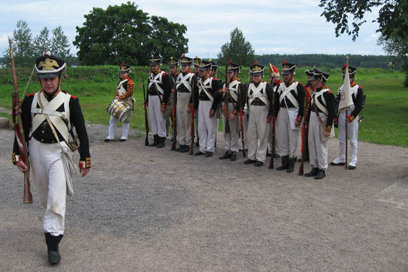 Venäläistä varusväkeä Lappeenrannassa pukeutuneena 1800-luvun alun sotilasuniformuihin (Suomen sodan aikaisia)